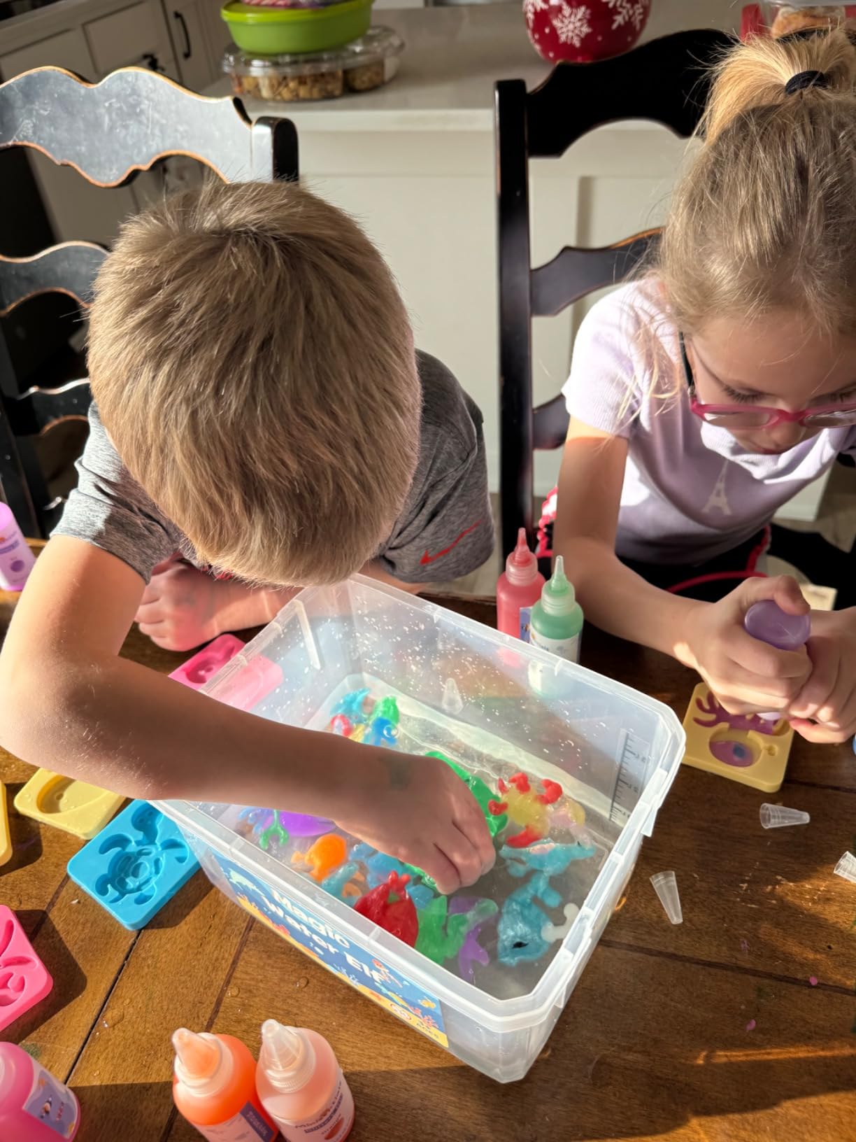 My 7 and (almost 5) year olds LOVED this. Literally made them all in one sitting all on their own. They turned out perfect. We used a blacklight to observe full effect of the 'glow in the dark'.